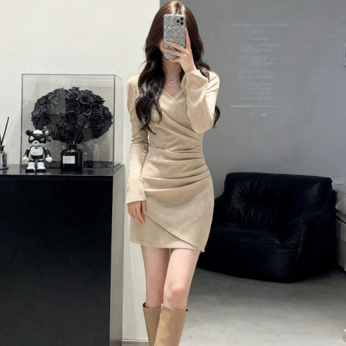 Kishai | Women’s Off-Shoulder Hollow Diamond-Accented Long Sleeve Dress with Backless Slim-Fit Skirt