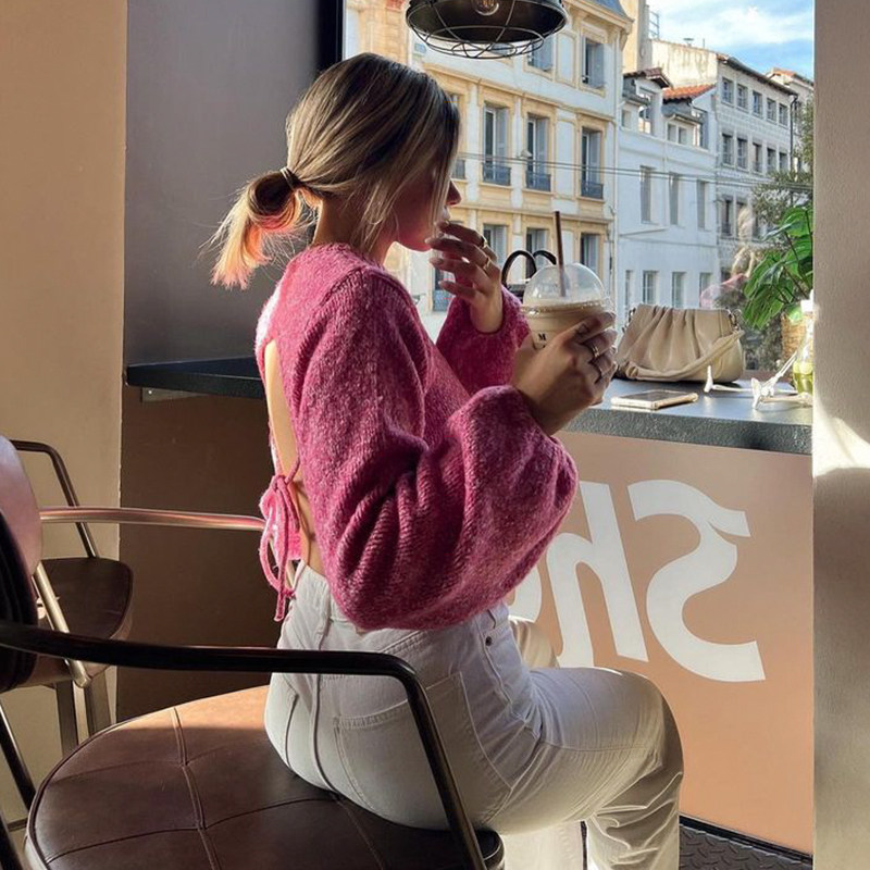 Stay cozy and stylish this autumn and winter with this European-inspired knitted top. Featuring a loose, relaxed fit and a tie-back detail, this sweater offers effortless comfort while adding a touch of chic flair. Perfect for casual outings, weekend lounging, or layering over skirts and pants, this versatile piece blends lazy style with modern fashion. Pair with jeans, leggings, or boots for a cozy yet trendy look.