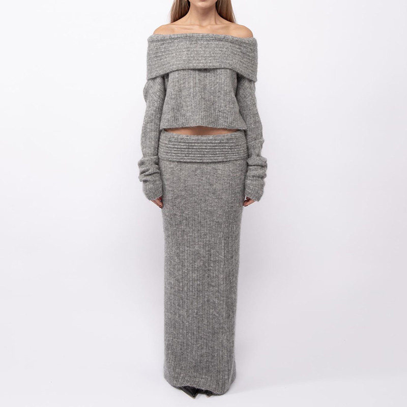 Kishai | Women’s Winter One-Shoulder Sweater and Fishtail Skirt Set with Long Sleeve Top