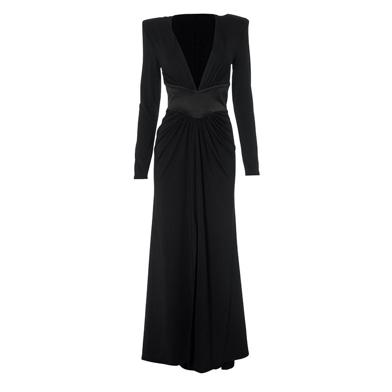 Elevate your style with this high-end V-neck maxi dress featuring a flattering patchwork waist design and a dramatic high slit. The slim-fit silhouette accentuates curves while the flowing long skirt adds elegance and sophistication. Perfect for upscale parties, formal dinners, or cocktail events, this royal sister-style dress combines sexy allure with refined fashion. Pair with heels and delicate jewelry to create a polished, confident look suitable for any high-end occasion.