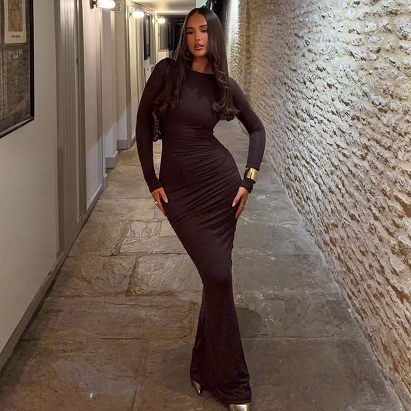 Step into elegance with this European-inspired backless maxi dress, featuring a figure-flattering hollow design and a slim-fit silhouette. The solid color and flowing long skirt create a versatile, sophisticated look perfect for banquets, formal dinners, cocktail parties, or upscale evening occasions. Designed to highlight curves while maintaining refined style, this dress pairs beautifully with heels and delicate jewelry for a polished, head-turning outfit.